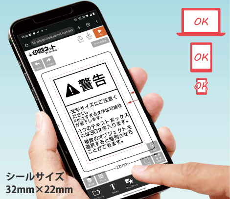 スマホやPCで自由にデザインできるシミュレーター対応の注意書きシール3種追加